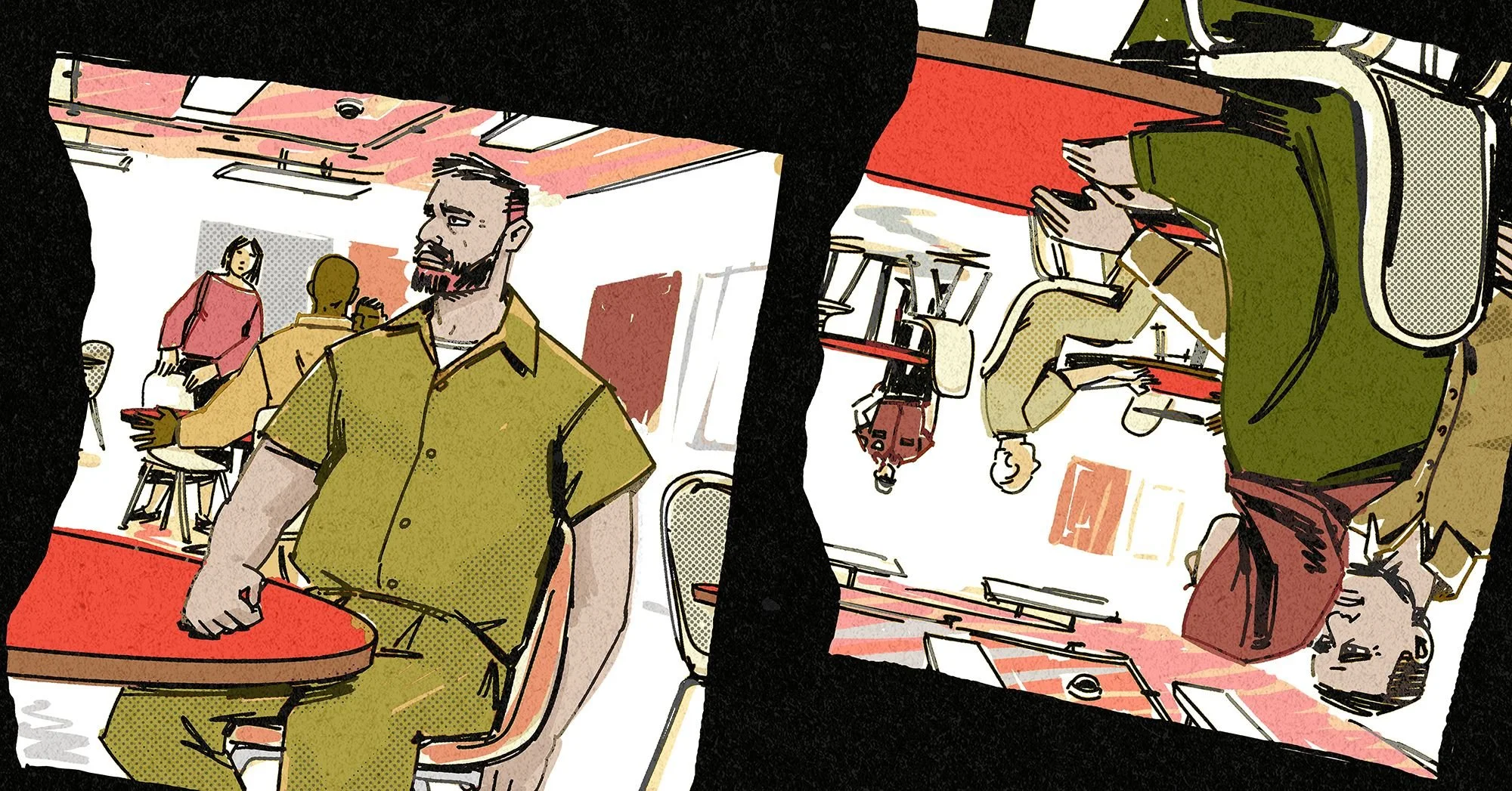 A little after 10, I was among a group of men summoned to the North Compound visit hall. To get inside, we walked through multiple metal detectors and a gauntlet of officers who patted us down, one by one. We were all so close to seeing our loved ones when one man learned that his visit with his 85-year-old mother had been canceled. Apparently, officers had deemed the burgundy of her shirt a gang color. “Go write that shit up!” a young officer shouted as the man walked away muttering.